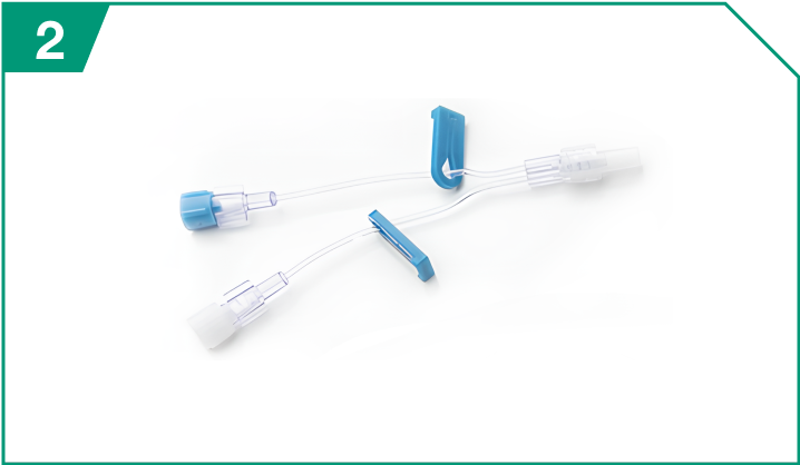 Attach the 0.9% Sodium Chloride Injection, USP syringe to the other arm of the Y-connector. Clamp off both arms until needed.