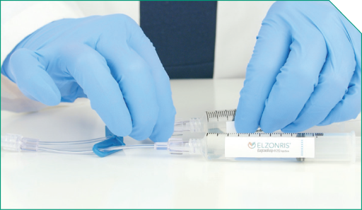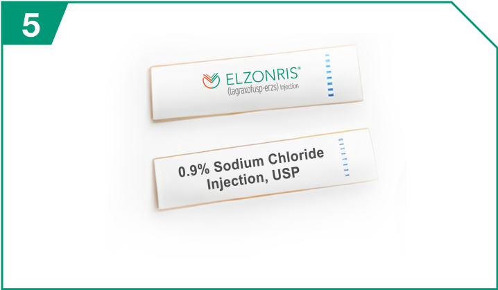 and fill it with at least 3 mL of 0.9% Sodium Chloride Injection, USP. This will be the 0.9% Sodium Chloride Injection, USP flush syringe. The 0.9% Sodium Chloride Injection, USP flush will be used to push out the full required dose of ELZONRIS to the patient at the end of the infusion.