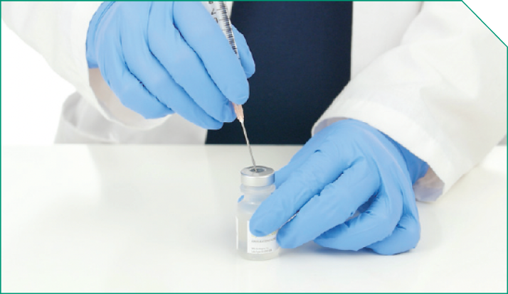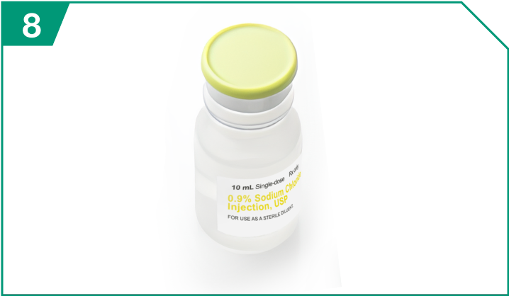 Step 1 Using a sterile 10-mL syringe, withdraw 9 mL 0.9% Sodium Chloride Injection USP, and transfer into the empty 10-mL sterile vial.
