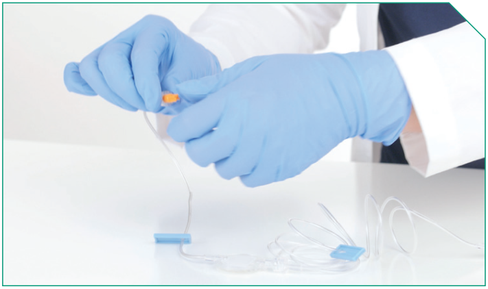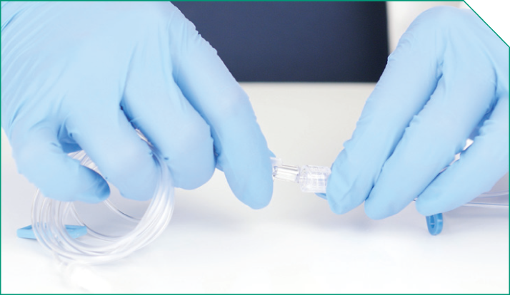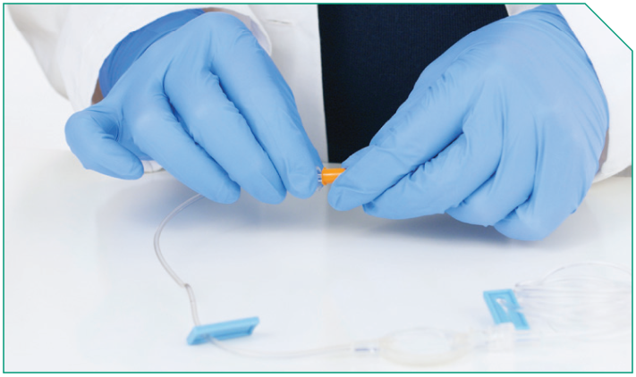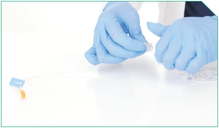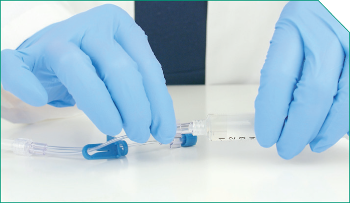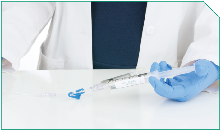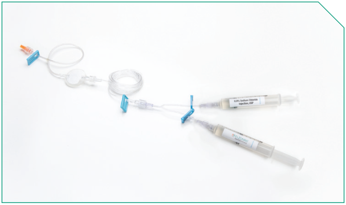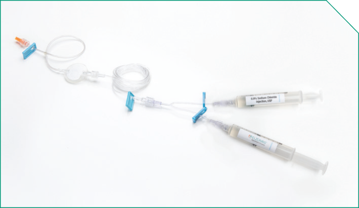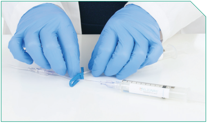 Next, prime the ELZONRIS side of the Y-connector, the microbore tubing, and the in-line filter.